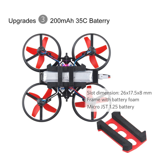 Upgrade with crazepony 35C 200mAh 1S battery, up to 3min and 40 seconds flight time